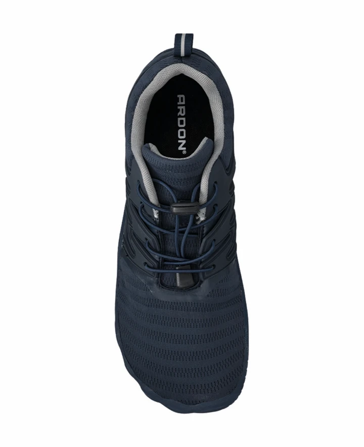 Sportovní polobotka Ardon Dropigo je komfortní lehká barefoot obuv z funkčních materiálů v moderním designu v modrých odstínech. Prodyšný svršek z Mesh textilie poskytuje výbornou ventilaci a udržuje nohy svěží. Foam stélka přináší jemné odpružení a zvyšuje pohodlí při chůzi. Tenká pryžová podešev podporuje přirozený pohyb chodidla a poskytuje citlivější došlap i lepší kontakt s terénem. Skvěle se hodí pro aktivní pohyb i běžné denní nošení.
