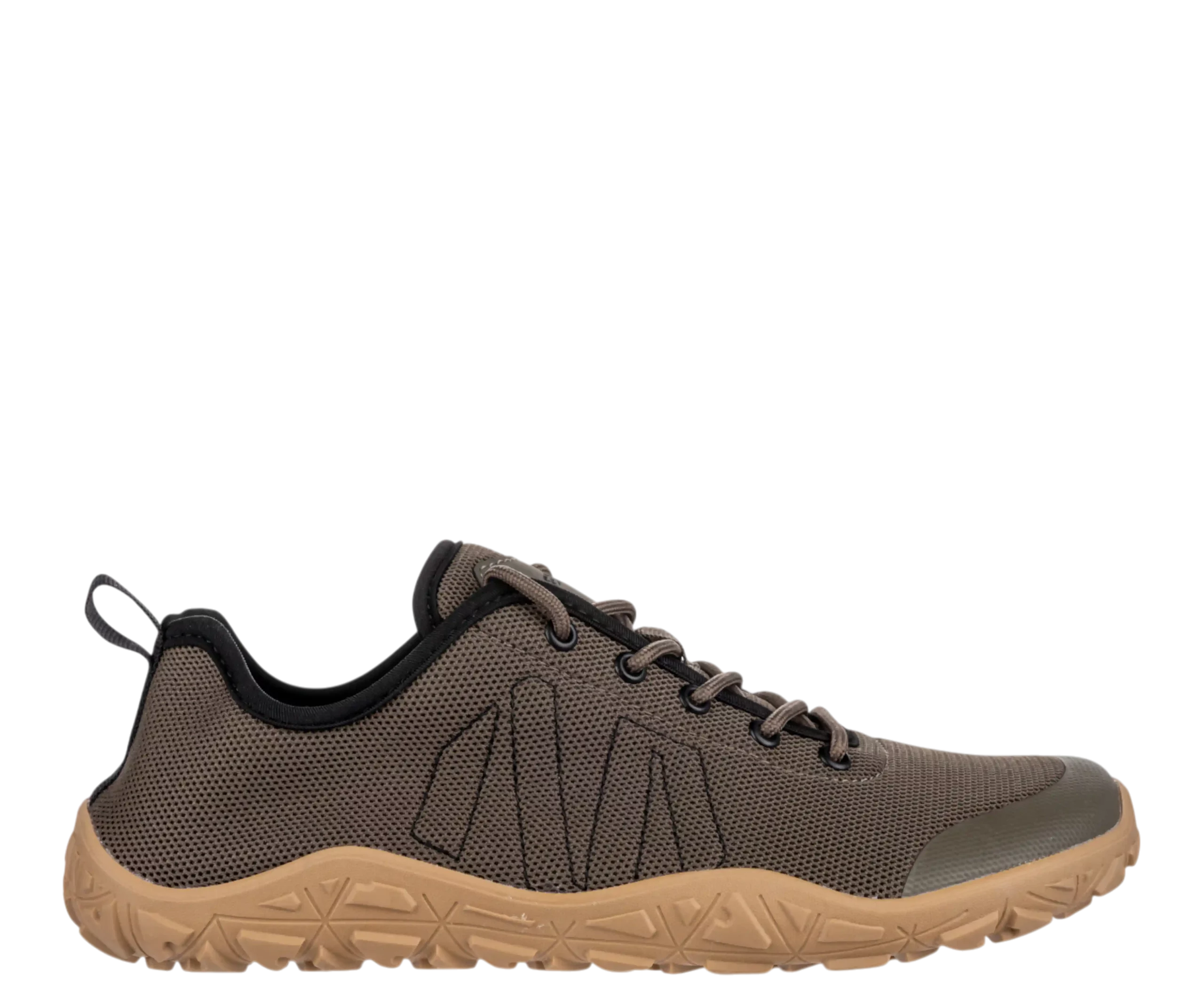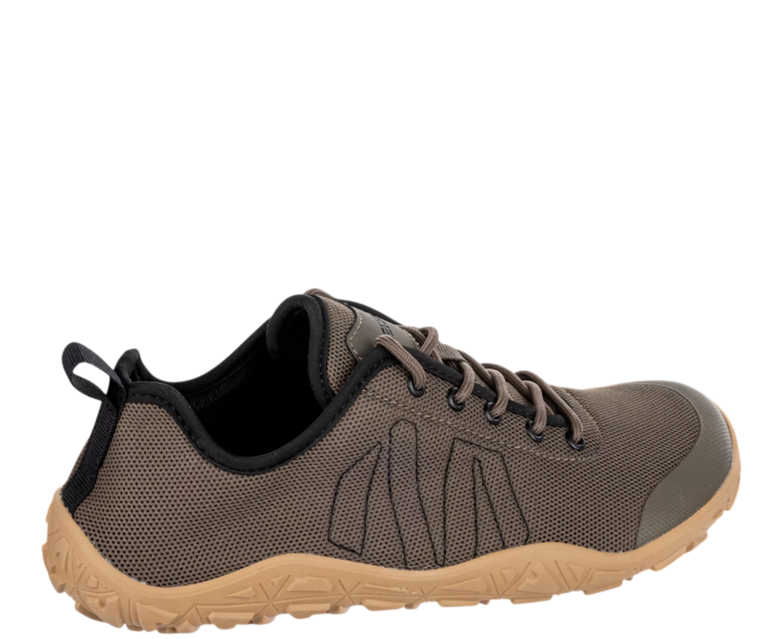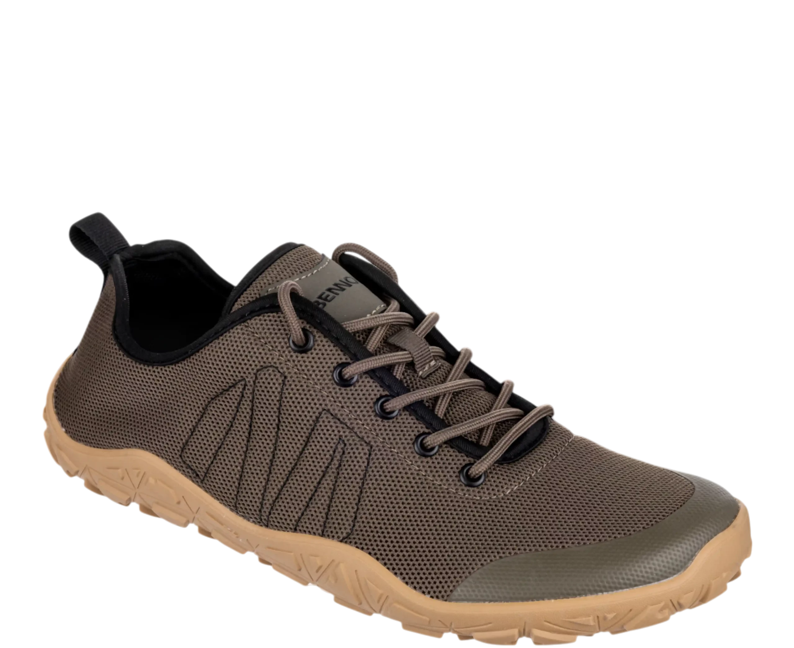 Moderní barefoot obuv Bennon Barefoot Breeze Khaki v přírodním khaki odstínu spojuje vzdušnost, flexibilitu a přirozený pohyb. Je navržena s respektem k anatomii chodidla, podporuje aktivní práci svalů. Lehký a vysoce prodyšný svršek v kombinaci MESH textilie a TPU, udržuje chodidla svěží i během teplejších dnů a při delším nošení. Široká špička poskytuje dostatek prostoru pro prsty, čímž podporuje stabilitu kroku. Flexibilní pryžová podešev BARESTEP zajišťuje lepší vnímání povrchu a jemnou stimulaci chodidel při chůzi. O komfort v outdoorové obuvi se stará stélka ABSORBA XTR s aktivním uhlím, která působí antibakteriálně, pohlcuje pachy a díky tvarované patní misce přispívá k pohodlnému došlapu.