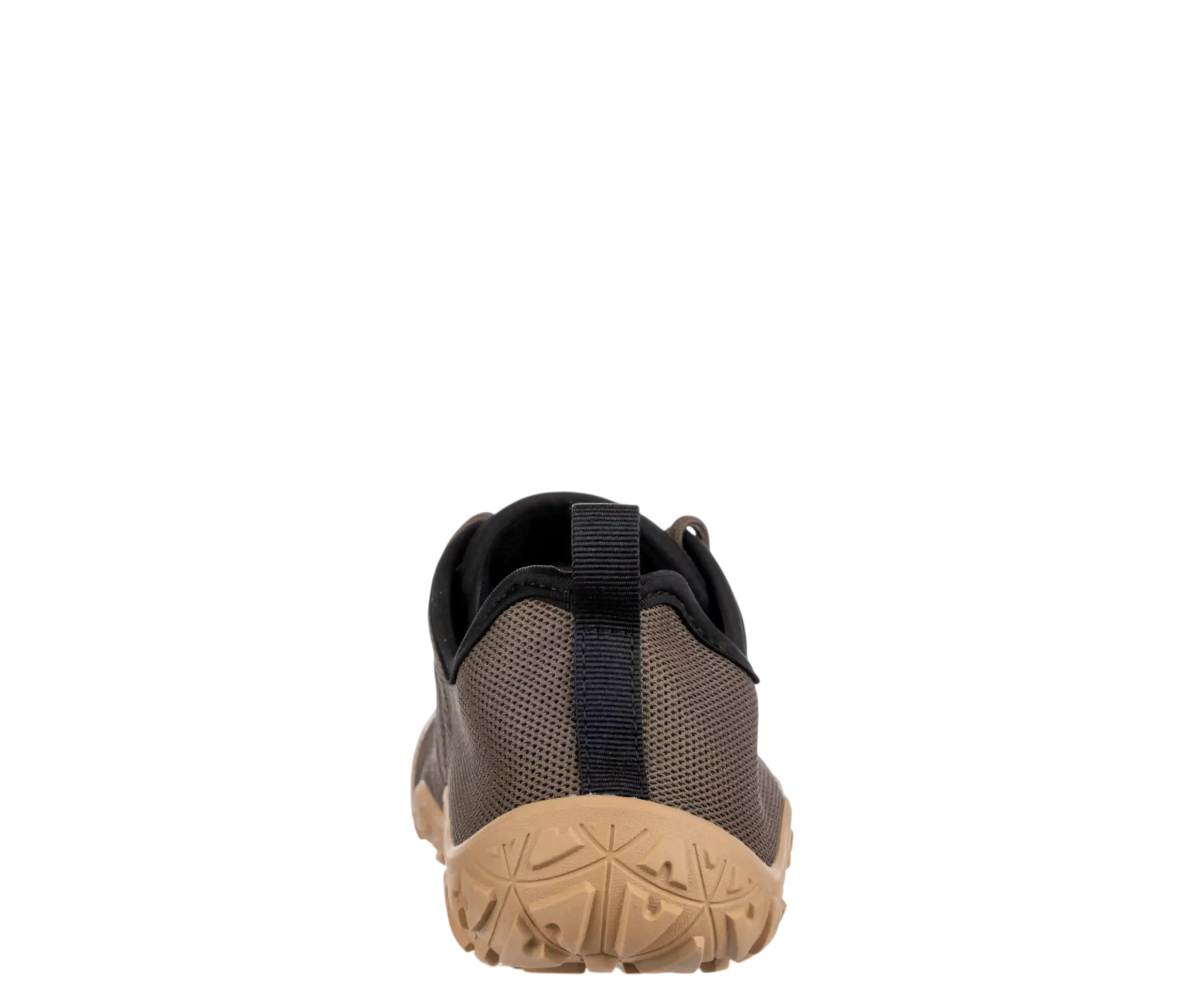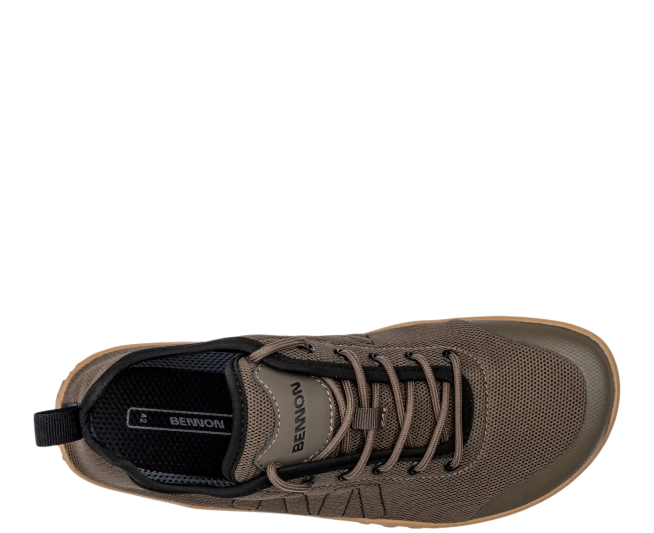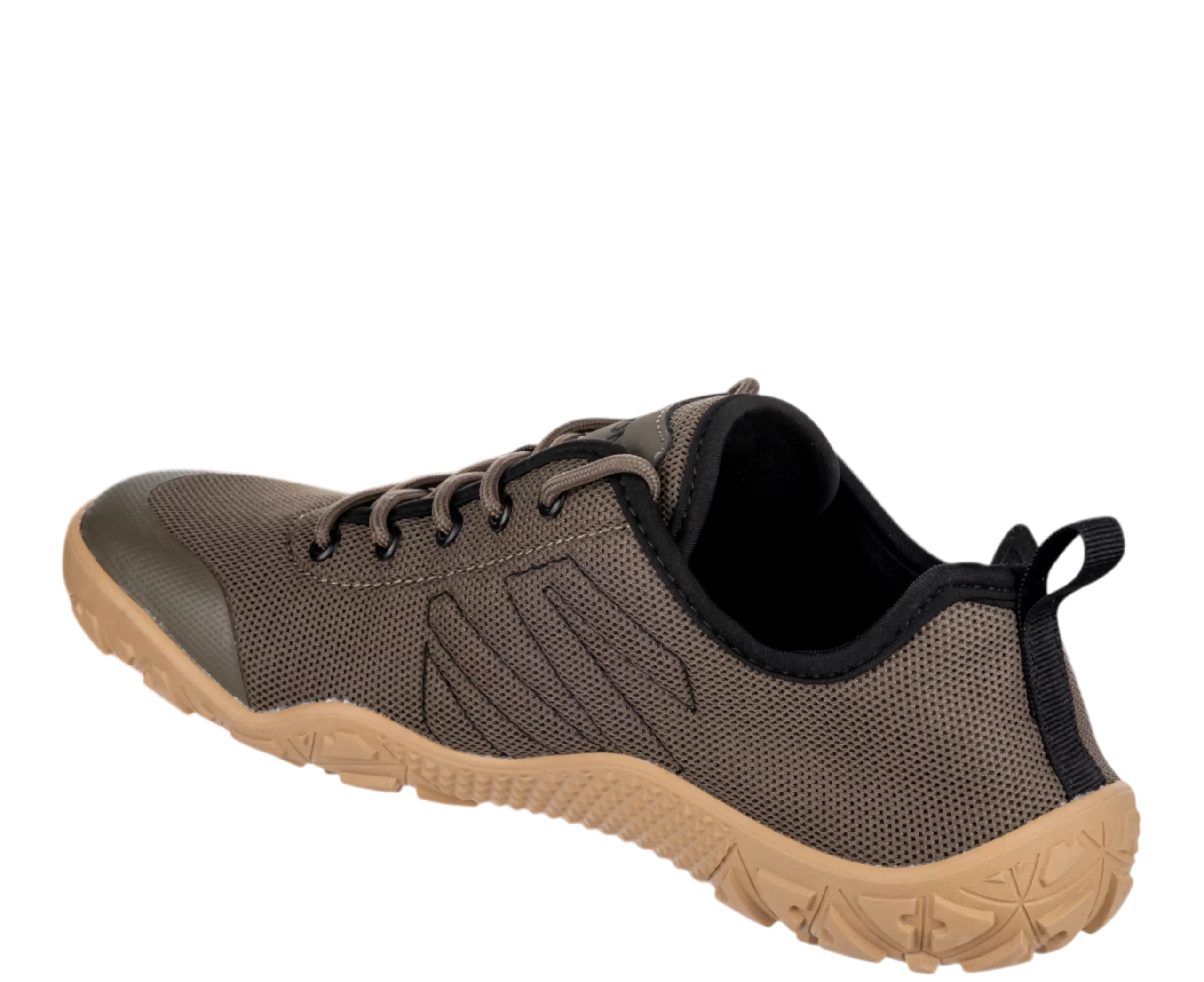 Moderní barefoot obuv Bennon Barefoot Breeze Khaki v přírodním khaki odstínu spojuje vzdušnost, flexibilitu a přirozený pohyb. Je navržena s respektem k anatomii chodidla, podporuje aktivní práci svalů. Lehký a vysoce prodyšný svršek v kombinaci MESH textilie a TPU, udržuje chodidla svěží i během teplejších dnů a při delším nošení. Široká špička poskytuje dostatek prostoru pro prsty, čímž podporuje stabilitu kroku. Flexibilní pryžová podešev BARESTEP zajišťuje lepší vnímání povrchu a jemnou stimulaci chodidel při chůzi. O komfort v outdoorové obuvi se stará stélka ABSORBA XTR s aktivním uhlím, která působí antibakteriálně, pohlcuje pachy a díky tvarované patní misce přispívá k pohodlnému došlapu.
