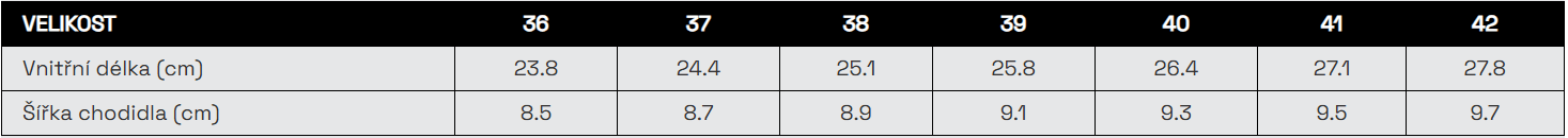 - Ve velikostech 36 až 42