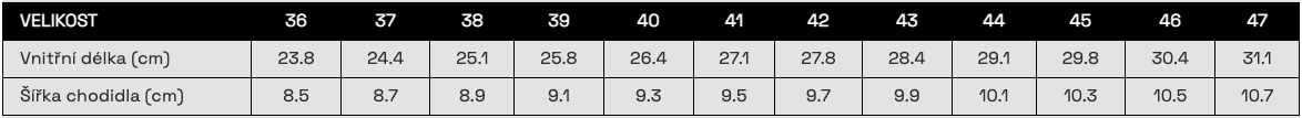- Ve velikostech 36 až 47