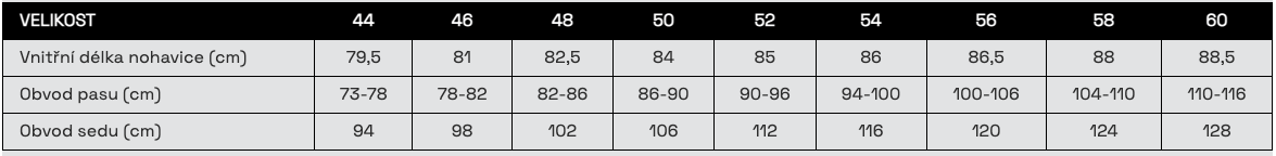 Pružný pas a trojité švy zajišťují pohodlí i dlouhou životnost.