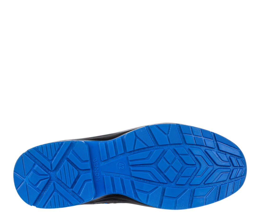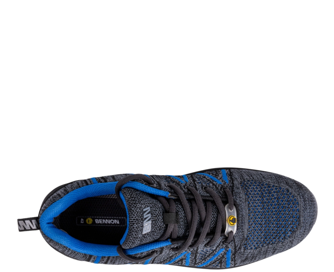 Nízká bezpečnostní polobotka Bennon KNITTER S1 Blue Low 4WIDE pro celodenní práci ve vnitřních a suchých provozech. Díky širokému střihu 4WIDE nabízí dostatek prostoru bez tlačení pro každé chodidlo. Svršek z prodyšné textilní pleteniny podporuje cirkulaci vzduchu a zvyšuje komfort při dlouhodobém nošení. Ochranu prstů zajišťuje lehká kompozitní tužinka. Podešev ORFEUS poskytuje stabilitu a pohodlnou chůzi i při delším zatížení. Pracovní boty splňují ESD požadavky a jsou tak vhodné i do EPA prostorů s citlivou elektronikou.