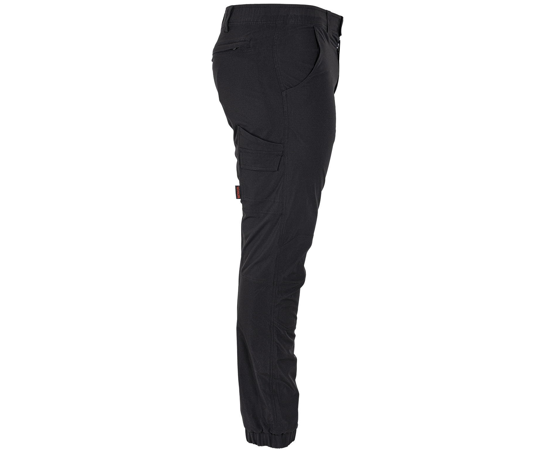 Odolné ripstopové kalhoty moderního jogger střihu, vyrobené z lehkého a pevného polyesterového materiálu s voděodpudivou úpravou. Na dotek působí jako bavlněné, přesto jsou z technického RIPSTOP materiálu, který je odolný vůči oděru a přitom zůstává lehký a pohodlný. Díky technologii mechanical stretch jsou kalhoty mírně pružné a skvěle se přizpůsobí pohybu. Pružný pas se zapínáním na kvalitní suchý zip zajišťuje pohodlí při celodenním nošení. Kalhoty mají šest praktických kapes: dvě přední, dvě zadní na zip a dvě cargo kapsy (větší a menší).