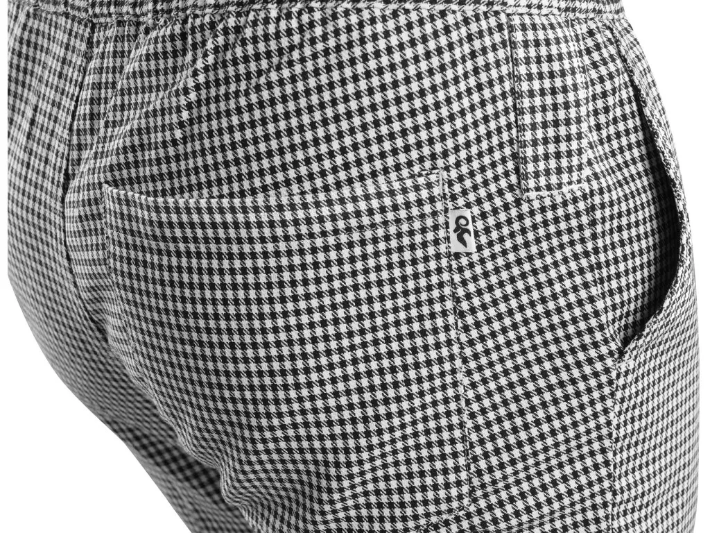 Pánské pracovní kalhoty Canis CXS ENZO v oblíbeném pepito vzoru jsou ideální volbou do prostředí gastronomie, hotelnictví i služeb, kde je potřeba reprezentativní, čistý vzhled, praktičnost a pohodlí. Lehký a příjemný materiál ze 100% bavlny podporuje prodyšnost a pohodlí i při dlouhých směnách. Klasický střih s pružným pasem dobře sedí a neomezuje v pohybu. Praktické kapsy poskytují prostor pro drobnosti, které potřebujete mít stále po ruce. Pepito design dodává pracovnímu oděvu profesionální, ale zároveň nadčasový vzhled.