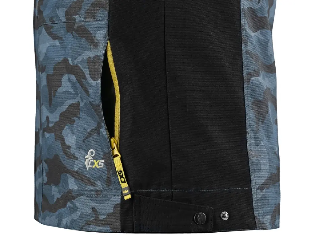 Pánská pracovní bunda Canis CXS STRETCH je vybavena rukávy s nastavitelnými manžetami a praktickou kapsičkou s klopou na levém rukávu. Nechybí náprsní kapsy na druk a zip, boční kapsy na zip a regulovatelný pas pro lepší přizpůsobení postavě. Kryté zapínání na zip a druky chrání před větrem a prachem. Větrání na zádech zvyšuje komfort při fyzické práci a reflexní doplňky podporují lepší viditelnost. Díky pružným prvkům se blůza přizpůsobí pohybu těla a neomezuje při ohýbání ani při zvedání rukou. V barevných kombinacích světle šedá/černá, tm. šedá/černá, béžová/černá, tm. modrá/černá, sv. modrá/černá, červená/černá, bílá/černá nebo celá černá. V nabídce i ve zkrácené verzi pro výšku 170-176 cm.